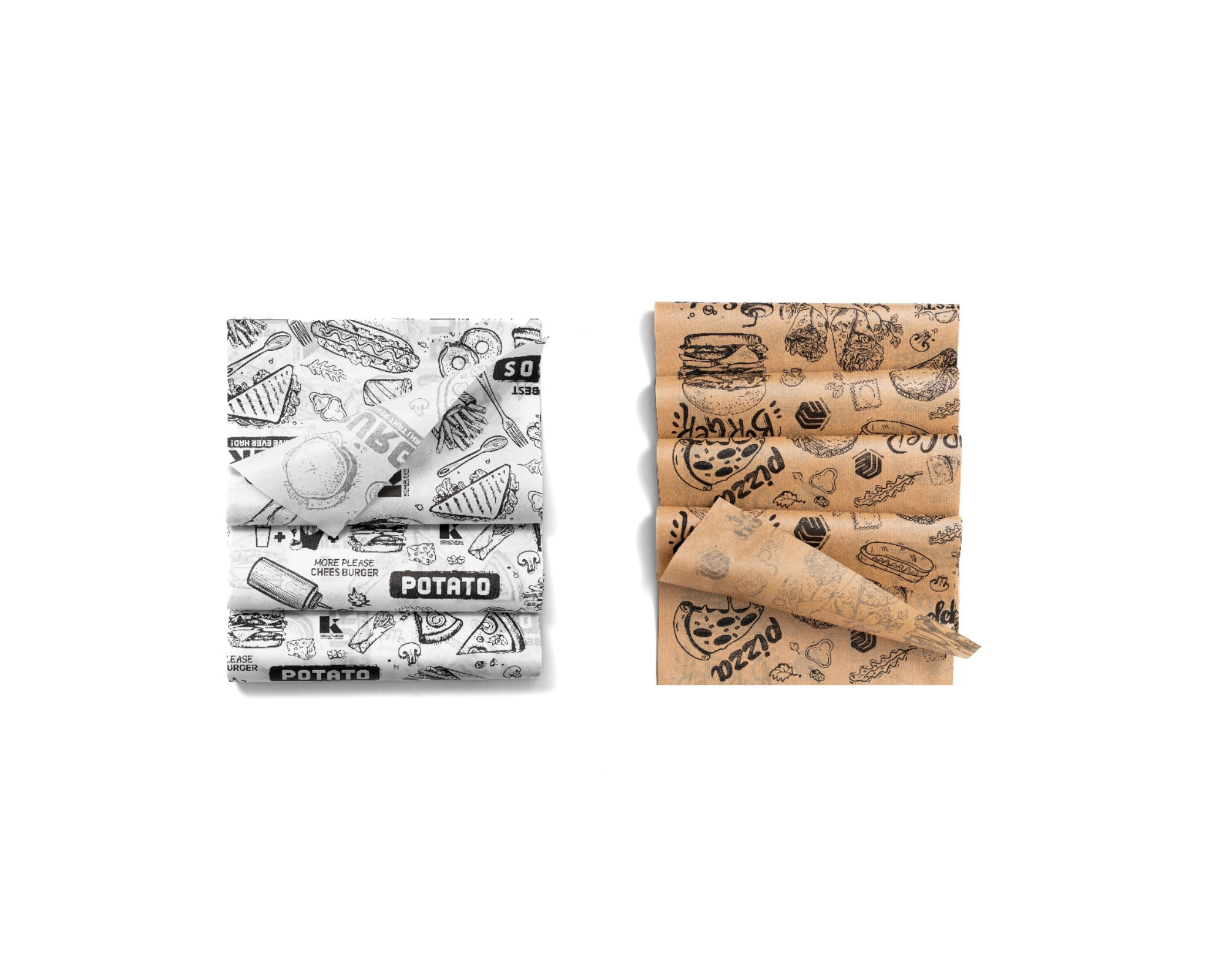 Papier polyvalent destiné à l’emballage alimentaire à usage direct : burgers, sandwiches, tacos, shawarma, kebab, pizza, etc
